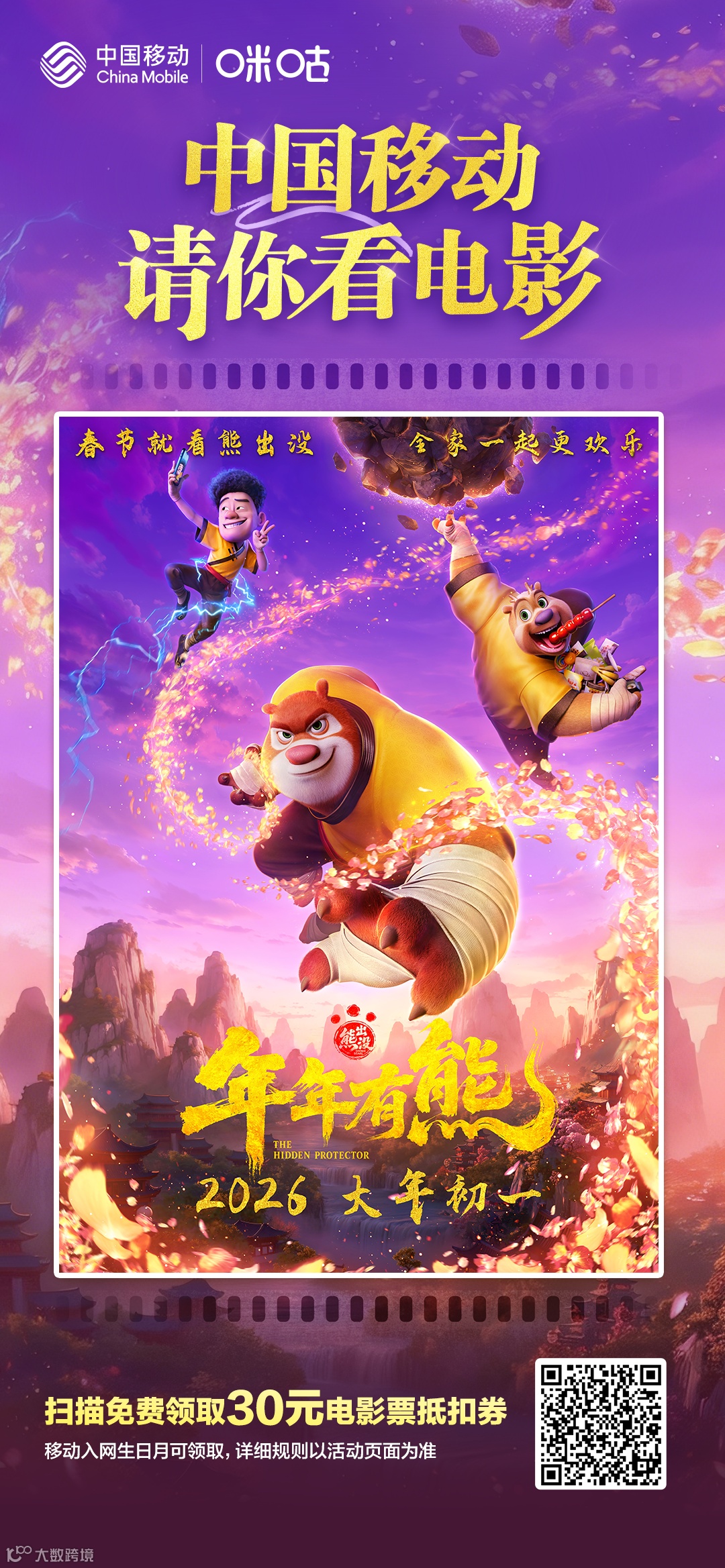 中国移动用户扫码领取30元生日抵扣券,入网生日月可领取。