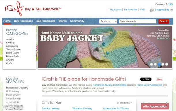 一个专注于 手工制品和原创礼品 的在线销售平台,平台只允许销售 100% 手工制作的产品,不接受转售、代发等。产品类别涵盖饰品、家居、艺术品等,定位类似 Etsy,但规模更小、社区化更强。