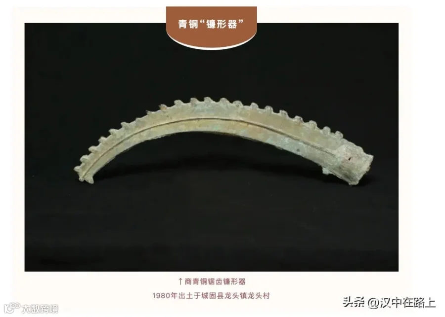 【配图说明】配图选用青铜锯齿镰形器侧面图,可标注“商青铜锯齿镰形器——城固县博物馆藏,全国唯一的商代青铜礼器类型”。