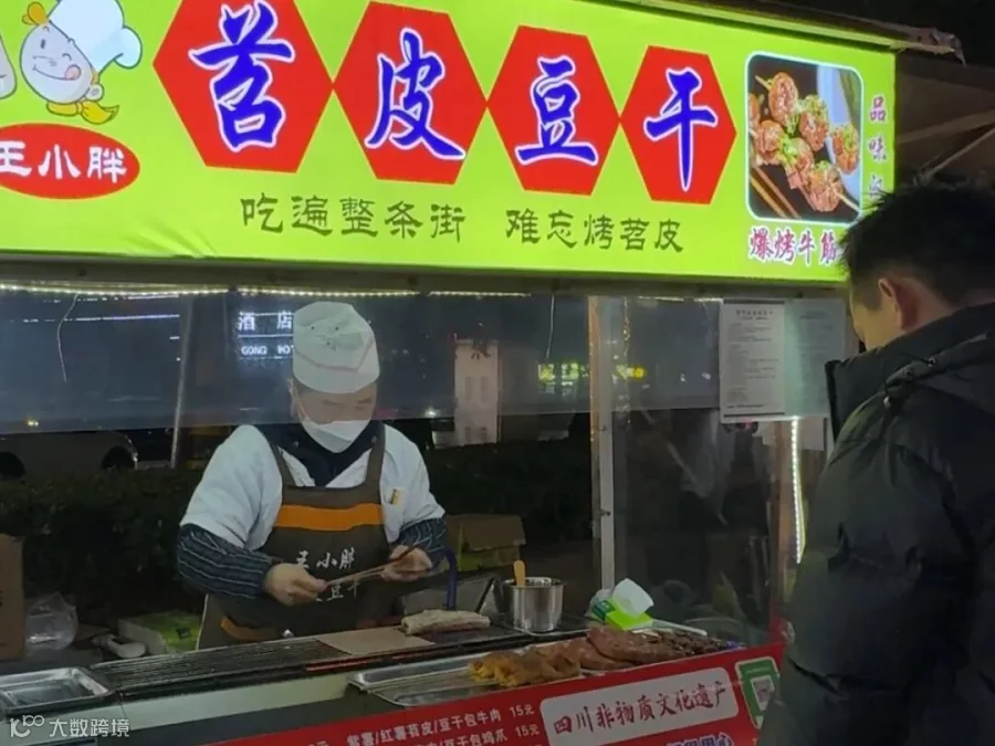 实效很快在升腾的灶火间显现。2月10日晚,“王小胖苕皮豆干”的摊主正忙得不可开交。他麻利地夹起烤得焦香的苕皮,刷酱、撒料、打包,一气呵成,几乎顾不上擦一把额角的汗珠。