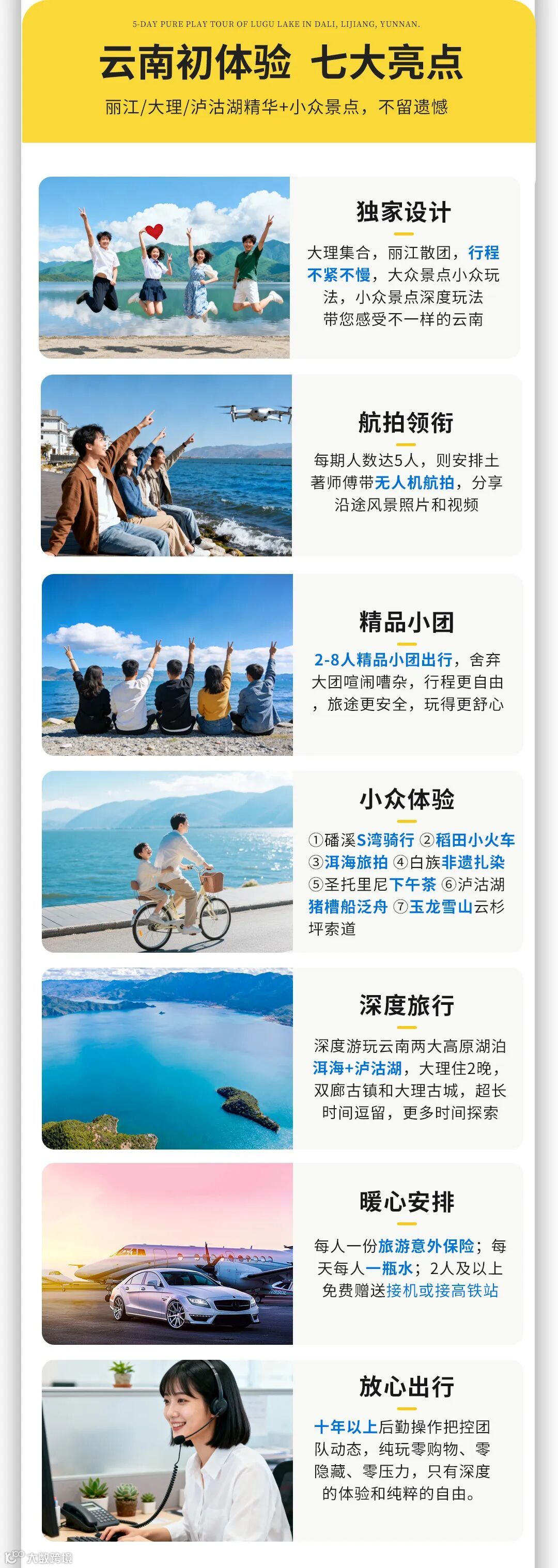 【专业负责】1)当地老司机开车带您玩,专业后勤24小时保障,比自由行更靠谱;2)全程纯玩无购物,无车销,只做有品质的旅行。
