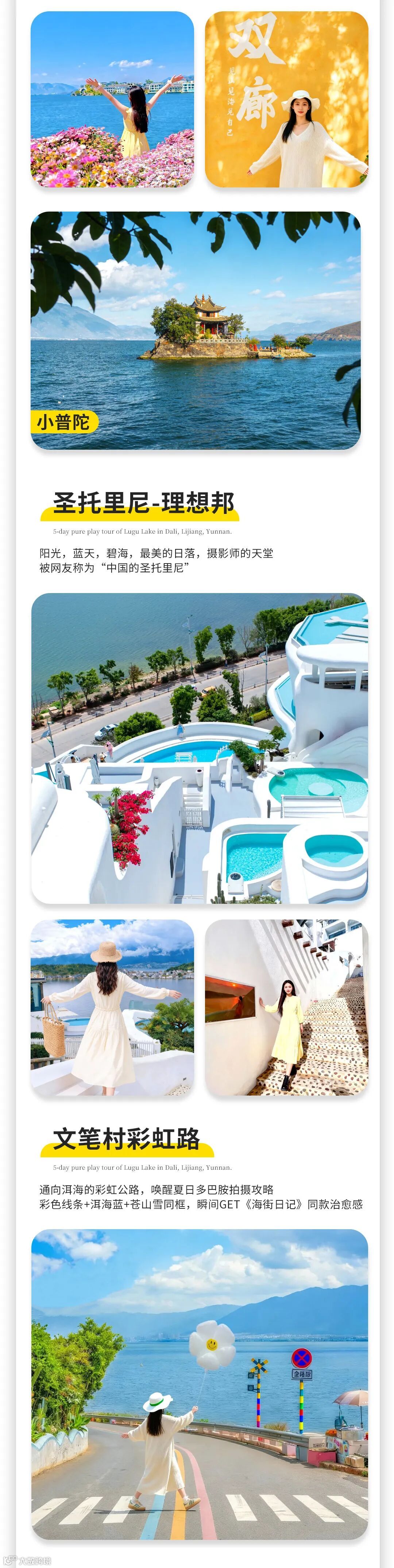 <大理-丽江-泸沽湖>玉龙雪山-双廊古镇-圣托里尼-文笔村-小普陀-喜洲稻田5日漫游(无人机航拍 | 下午茶 | 小火车 | 双廊洱海旅拍 | 白族非遗扎染 | 洱海骑行 | 猪槽船泛舟 | 篝火晚会)