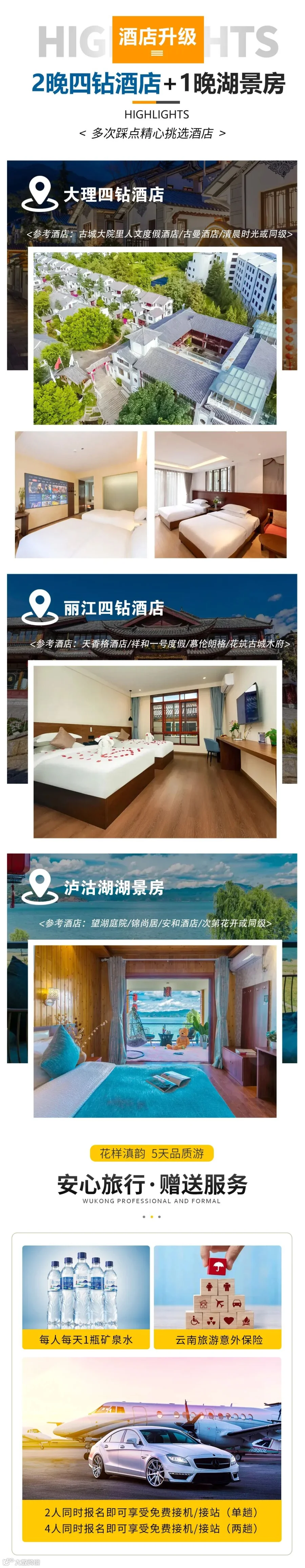 (2)云南山区住宿条件有限,有些酒店部分无电梯,敬请理解;