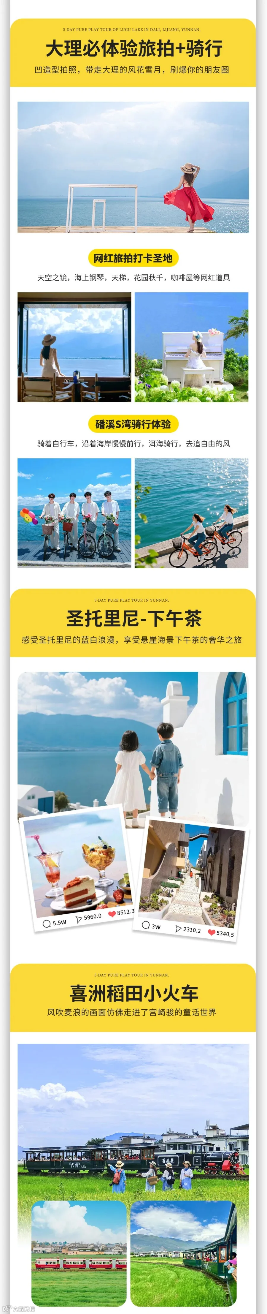 【特别安排】7大特色体验:磻溪村S弯骑行+喜洲稻田小火车+白族非遗扎染+洱海旅拍+圣托里尼下午茶+泸沽湖乘猪槽船泛舟湖上+摩梭篝火晚会,带您深入游玩大理丽江山海之旅!