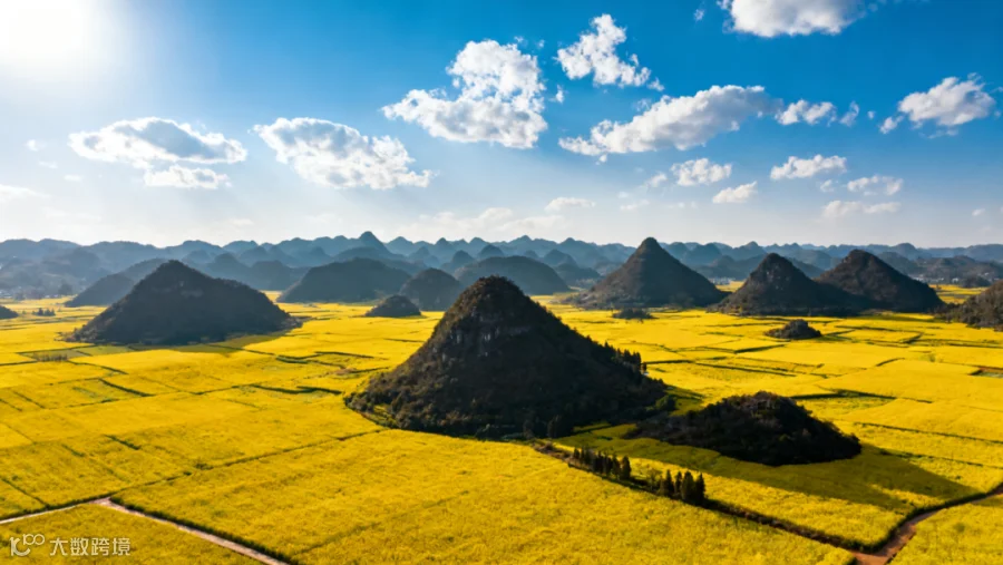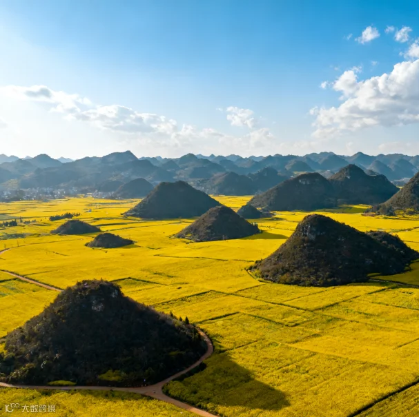 早餐后驱车前往【金鸡峰丛油菜花】,金鸡峰丛占地有近百平方公里,有着特殊的喀斯特地形,许多锥状山头玲珑有致的散落在这一片土地上,高的百余公尺,低的十几公尺,像是雨后春笋一般。在此我们特别安排乘坐【花海小火车】穿梭于花丛中,欣赏沿途金色满园的风光。在这里还可以拍摄近距离花海,置身于万亩油菜花海的天成花园游玩拍摄。这里有着无边无际的金黄色油菜花海,令人目不暇接。