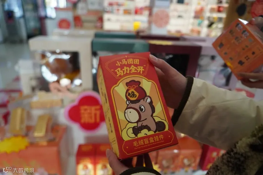 除了这四匹“小马”,店里还藏着不少惊喜:“马尚有”毛绒包挂盲盒巧妙融入“马尚有好‘柿’”“马尚有‘桃’运”“马尚有‘钱’花”等趣味谐音梗,让传统吉祥寓意与年轻化表达交融;“马力全开”系列的毛绒挂件则可以挂在背包上,仿佛随时准备带着主人奔向新的一年。每一件蕴含中国年味与马文化底蕴的文创产品,都让抽象的“年味”变得可触、可感、可带回家。