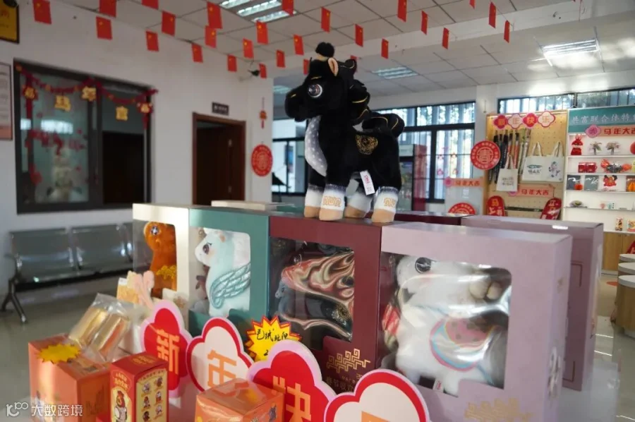 走进姥山岛游客中心,各类红色装饰营造出浓郁的年节氛围。最吸睛的,莫过于占据了“C位”的四匹“小骏马”——春晚吉祥物毛绒玩偶“骐骐”“骥骥”“驰驰”“骋骋”。