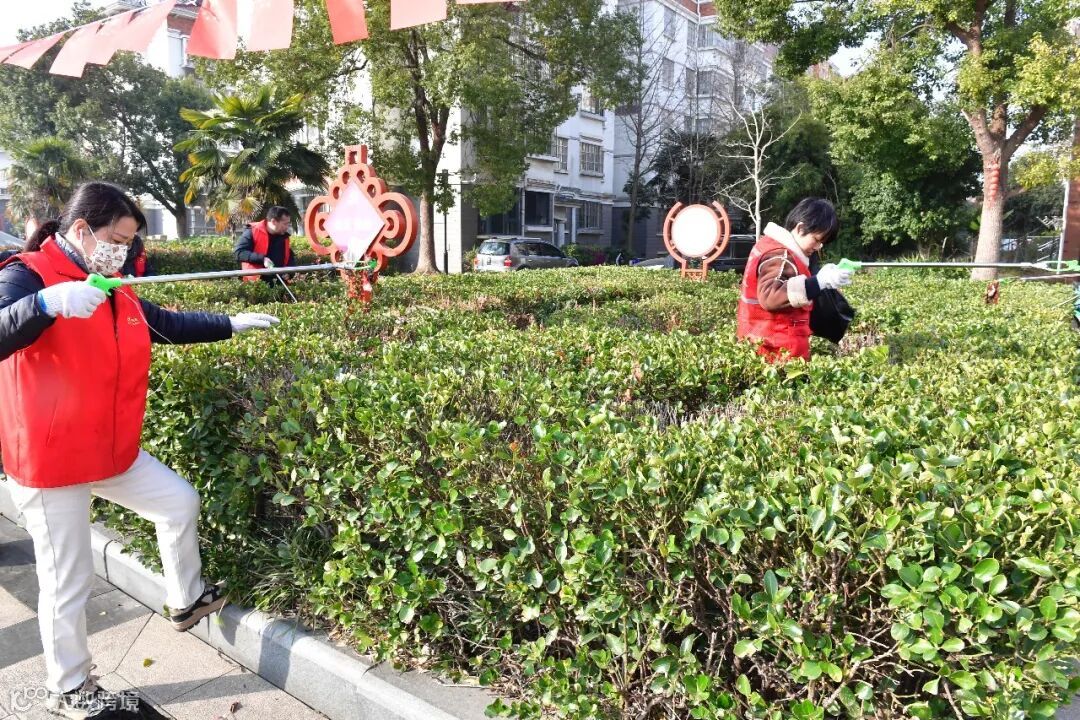 在半汤路恒大帝景小区主出入口,物业员工正冲洗清扫路面;小区内,师傅们爬上爬下擦拭路灯灯罩,另有工人正站在梯上安装景观灯。“除全面大扫除外,我们还将逐栋清扫冲洗入户单元道路,并在小区悬挂灯笼,张贴春联,为1700余户居民营造浓郁的春节氛围。”物业经理李小龙介绍。