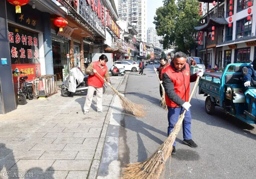 “江南风情街日常保洁由物业公司负责,我们党支部每月组织党员及志愿者开展1至2次环境卫生志愿行动,查漏补缺,确保街区时时整洁、处处干净。”向阳社区党委副书记胡伟介绍。