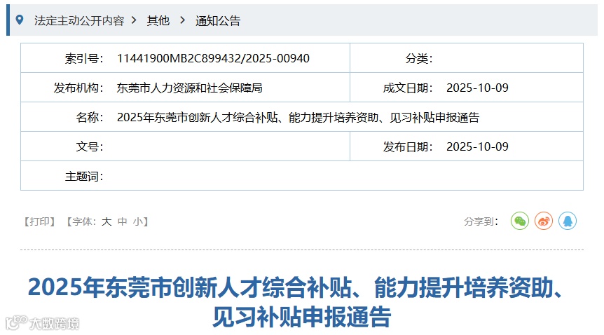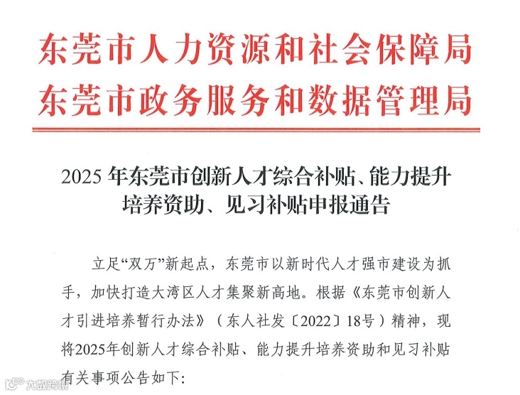 好消息!东莞2025年创新人才补贴通知