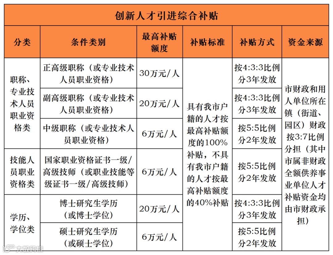 (一)创新人才引进综合补贴