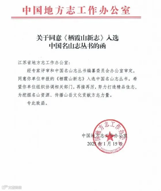 赋能文旅融合发展,《栖霞山新志》入选中国名山志丛书。历时10年完成栖霞山历史上首部官修志书,作为全国首批、江苏省首部入选中国名山志丛书的志书,同步入藏中国方志文库。