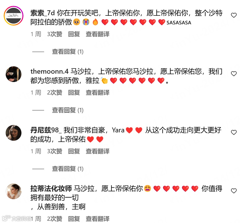 Moonglaze宣布入驻Selfridges的ins推文下,不少沙特人都表示了自豪和对Yara的赞许