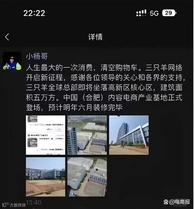 小杨哥表示,东部中心是客服中心,是数据运营中心,是三只羊集团数字经济发展的中心枢纽。