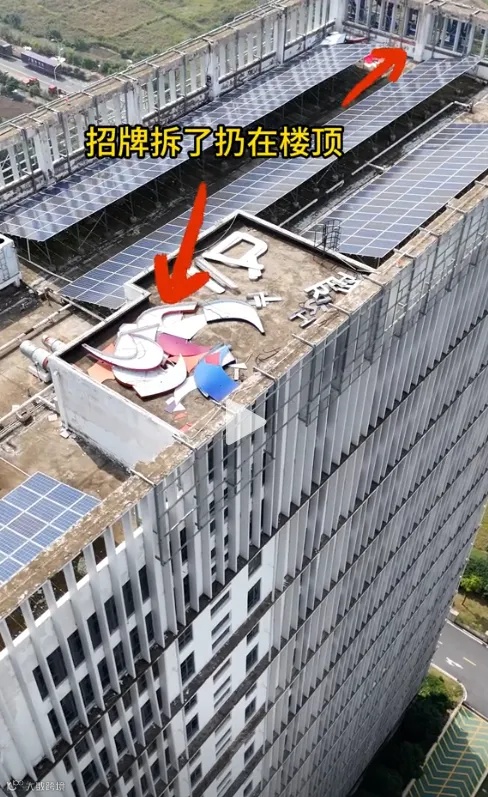 还有网友发布航拍的视频显示,三只羊集团东部中心原来挂招牌的位置被拆下来只剩下了铁架,拆下的招牌被扔在了楼顶。