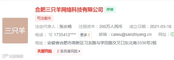 天眼查显示,合肥三只羊网络科技有限公司,成立于2021年,张庆杨是该公司联合创始人。