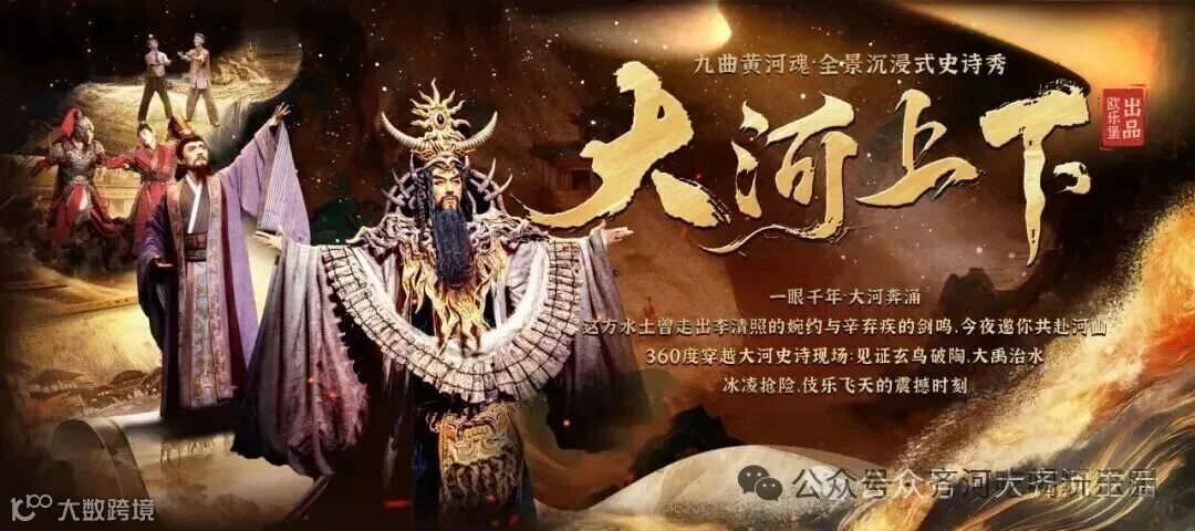 以黄河文明为魂,打造《大河上下》沉浸式史诗秀、大型户外演艺《盛世朝元》、水影秀《九曲黄河魂》及盛世烟花盛典,以现代艺术语言讲述动人的黄河故事。