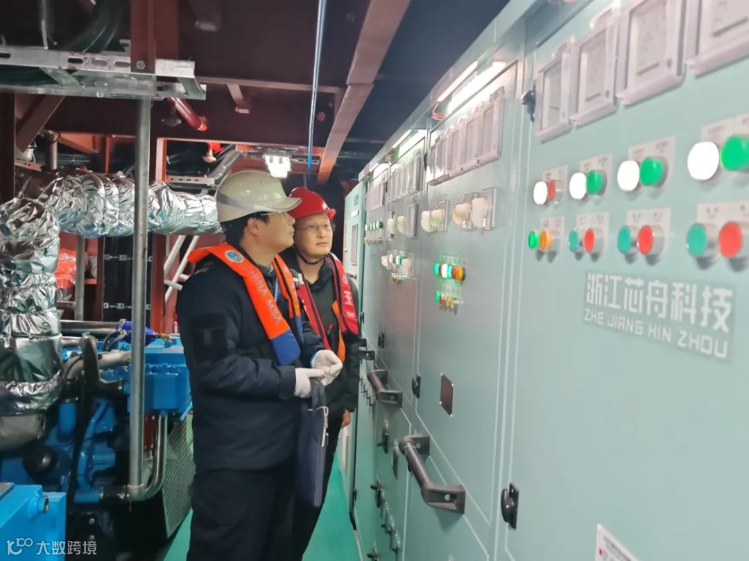 此外,南京海事局还登轮为船舶“问诊把脉”,重点检查甲醇发电系统、电池管理系统运行状态,核查船员对甲醇泄漏、电池热失控等突发情况的应急处置能力,指导船舶开展风险隐患排查,杜绝船舶“带病”航行,为首航筑牢安全防线。