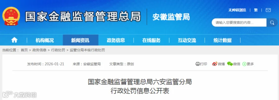 作出决定机关:国家金融监督管理总局六安监管分局