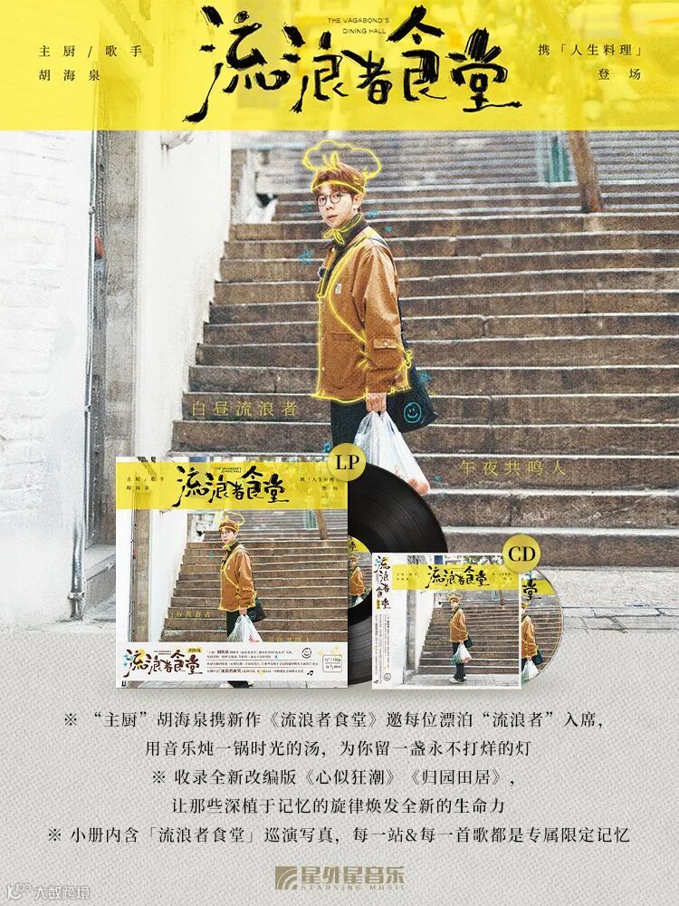 💿“主厨”胡海泉携新作《流浪者食堂》邀每位漂泊“流浪者”入席,用音乐炖一锅时光的汤,为你留一盏永不打烊的灯