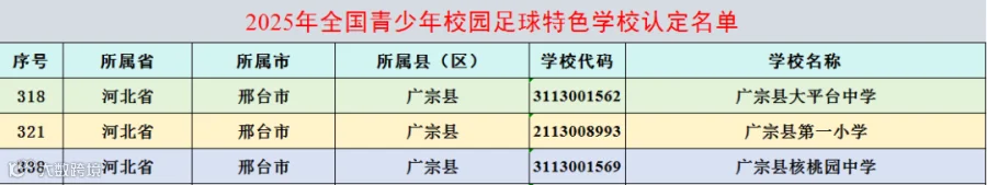 关于2025年全国青少年校园足球特色学校认定结果的公示