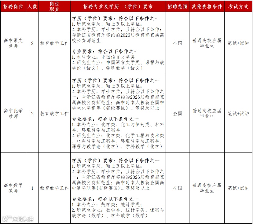 2. 2026年普通高校应届毕业生,应聘教师岗位暂不要求提供教师资格证书,但在办理聘用手续前须取得相应教师资格证书。
