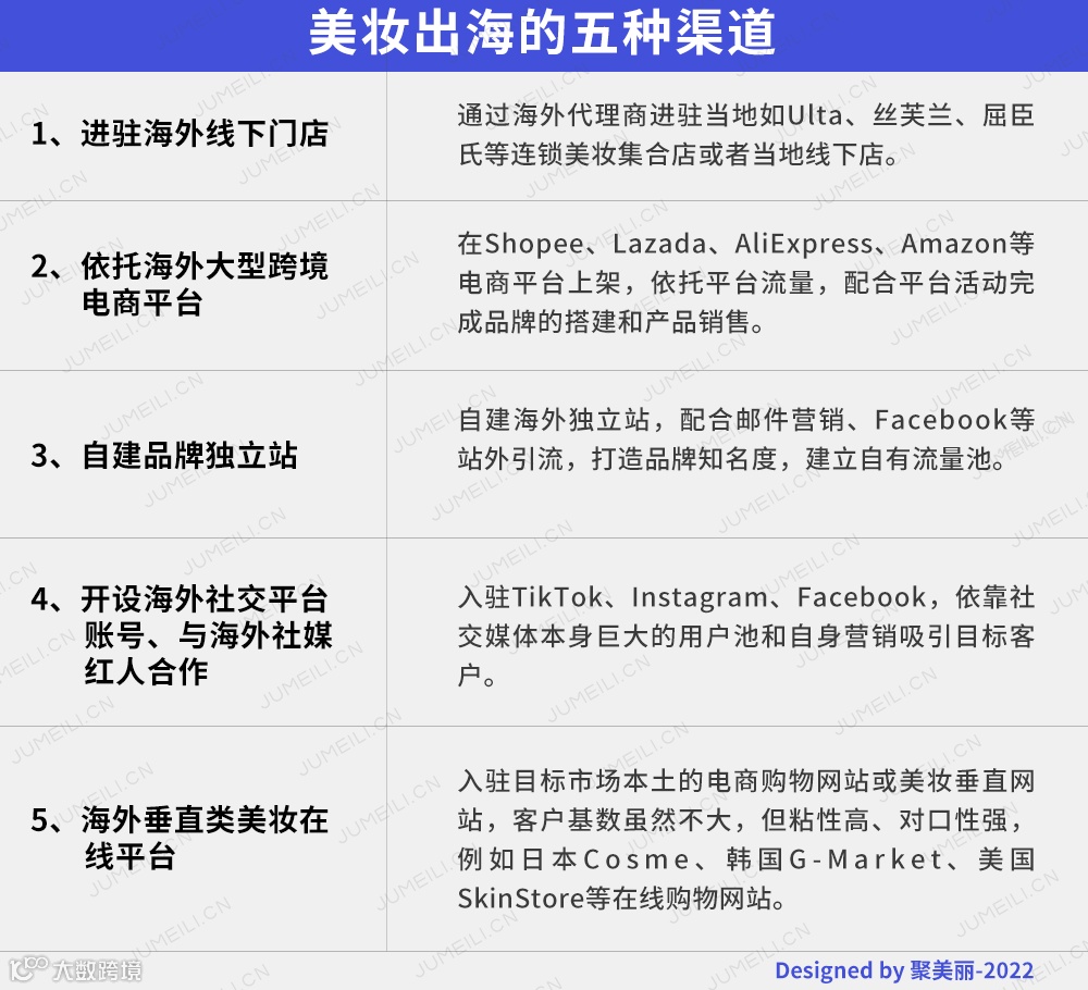 目前国货美妆品牌出海,主要有如下渠道和路径:
