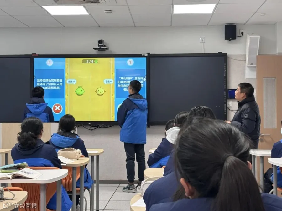 顾俊聚焦“共筑生命家园”主题,以政治认同培育为核心,将《中华人民共和国粮食安全保障法》的法治素材、“锁边工程”的生态实践、余村变迁的发展案例融入课堂。通过“法治关—生态关—行动关”三层闯关探究,破解“生态保护是国家事”的认知误区。以情境对比、角色扮演、任务单评析等形式,让学生理解“人与自然和谐共生”的发展理念,明晰法治与绿色发展的协同作用。最终通过“绿色生活公约”“我的家园守护计划”,推动学生将认同转化为节约粮食、爱护环境的自觉行动。