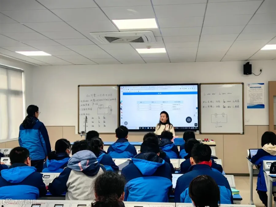在卓越教师工作室领衔人钭方健老师的指导下,夏芸芸老师以《测量小灯泡电功率》为课例,首先用学生熟悉的家庭电路创设生活情境引出探究问题,然后以问题为导向激发学生主动思考,并借助数智设备精准定量研究,最后应用结论解释自然现象、解决实际问题。整节课应用“情境创设-问题驱动-推理探究-迁移应用”的教学模式,提升了学生形成将生活与物理相关联的意识和能力,突出了物理来源于生活,又服务于生活的理念,逐步实现“为知识而教"向“为素养而教”的转变。