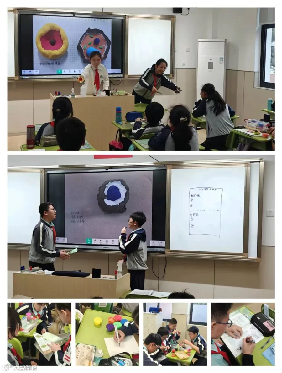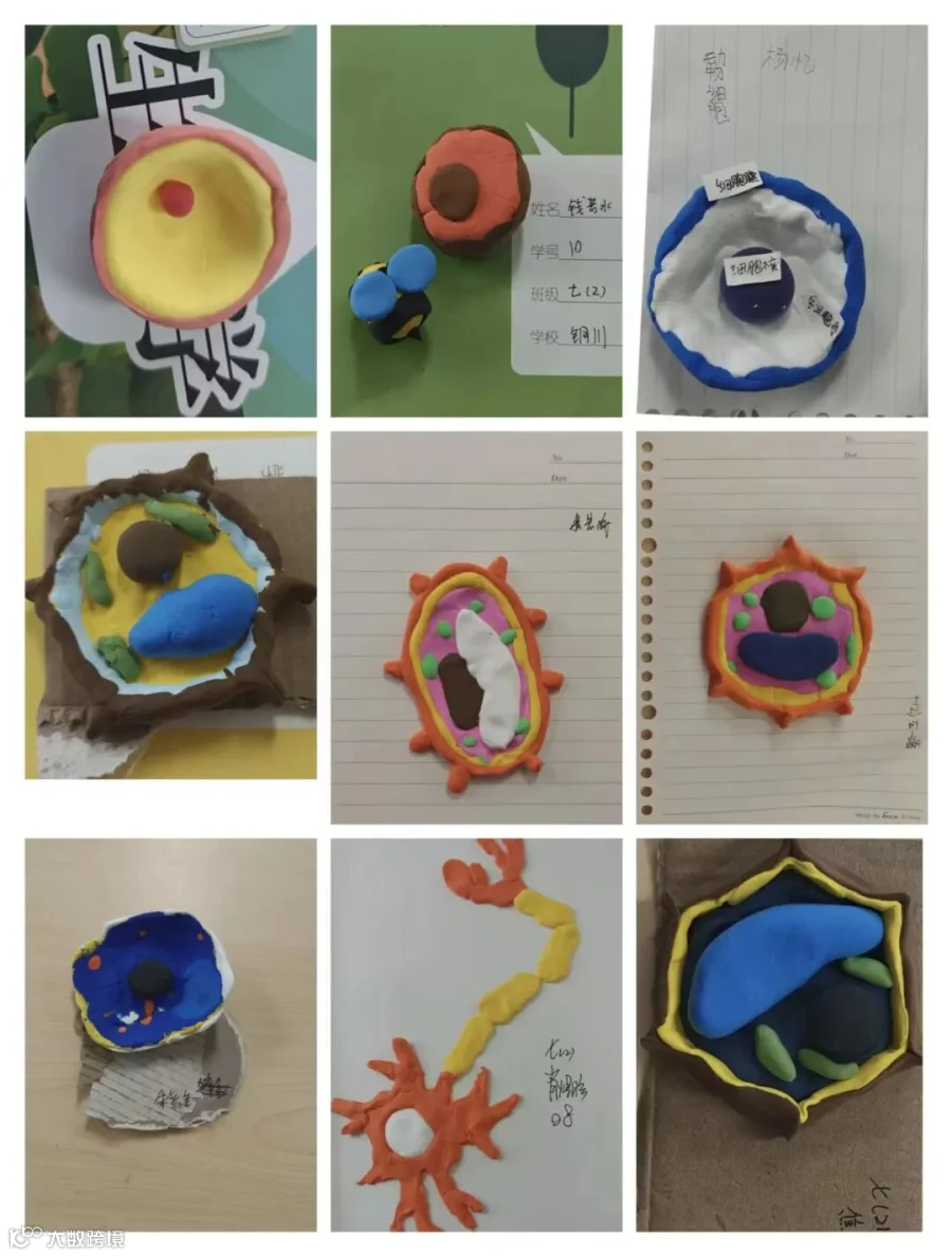在生物和科学课上,学生化身"细胞工程师",利用环保材料制作三维细胞模型,并在班级开展"微观生命结构展"。学生在裁剪、拼装、标注及作品交流、评价过程中,不仅深化了对细胞结构与功能统一性的理解,更在展示交流中锻炼了科学表达与评价反思能力。