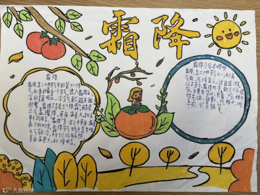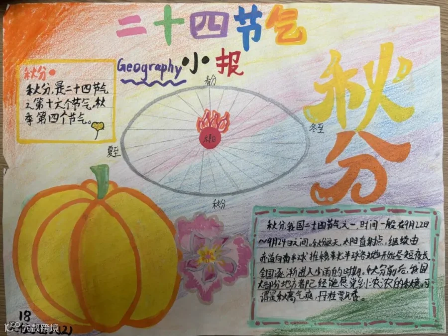 在地理课上,六年级学生创作节气主题画报,将物候观察、农耕智慧与美学表达有机融合,彰显传统文化与地理要素的深层联结。