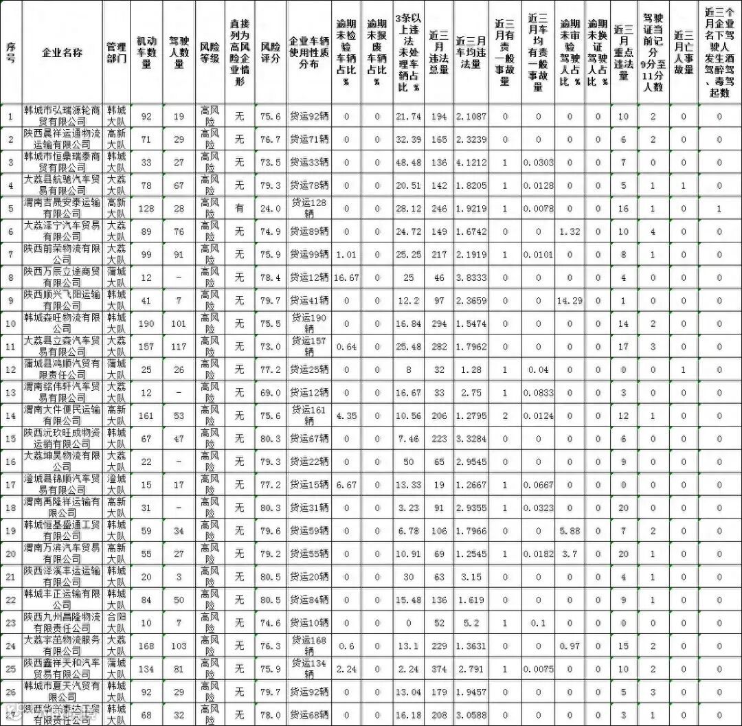 为进一步加强重点运输企业源头管理,增强企业安全管理意识,督促企业落实交通安全主体责任,全面预防和减少道路交通事故,现将我市2月份被公安部交管局大数据平台评定为高风险的货运企业予以曝光: