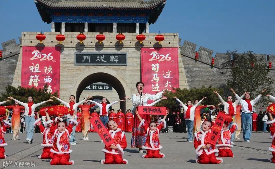 活动伊始,全体演员齐唱新版《祖籍陕西韩城县》,雄浑的歌声在古城上空回荡,瞬间点燃了现场的热烈氛围。随后,精彩纷呈的文艺专场轮番上演。
