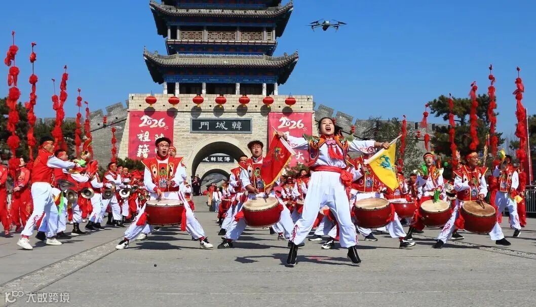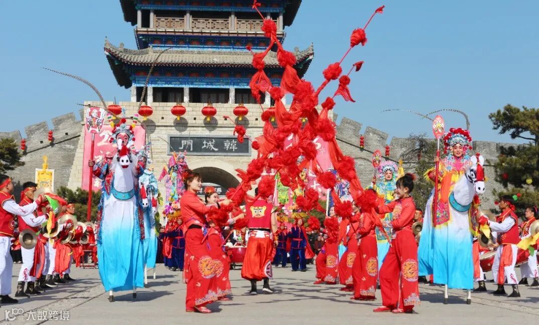 民俗表演《天地社火》将韩城社火的粗犷与热烈展现得淋漓尽致。高跷、芯子、锣鼓齐上阵,再现了古战场的雄浑与热闹。