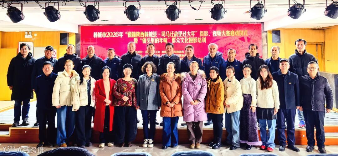 新春启序,光影筑梦。为深入贯彻落实党的二十大精神,更好的传承中华优秀传统文化,生动展现韩城市在新时代取得的丰硕发展成果,同时展现韩城独具特色的春节文化、地域风貌及新时代干部职工的精神风采,共同营造欢乐祥和、喜庆热烈的春节氛围,2月10日,韩城市2026年“祖籍陕西韩城县·司马迁故里过大年”摄影、视频大赛启动仪式暨“镜头里的年味”群众文化摄影培训在韩城市文化馆多功能厅举办,韩城市总工会党组成员、经审委主任王丽娜,韩城市文化和旅游局党组成员、副局长梁秋霞,韩城市文化馆馆长徐伟,韩城市职工摄影家协会主席马占邦及全市摄影爱好者参与了此次活动。