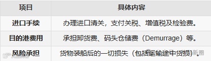买方:承担装船后一切风险、目的港费用及进口清关。