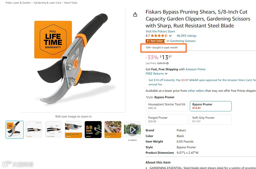 园艺工具类目畅销榜前五中有四款产品均是修剪器,相比于同样主打修剪根茎的Growlt,Fiskars售价更低。其次Fiskars的手柄防滑设计和刀片质量更优,开锁设计也更为方便易用,这些优势相互结合Fiskars得以获得不俗的市场表现。