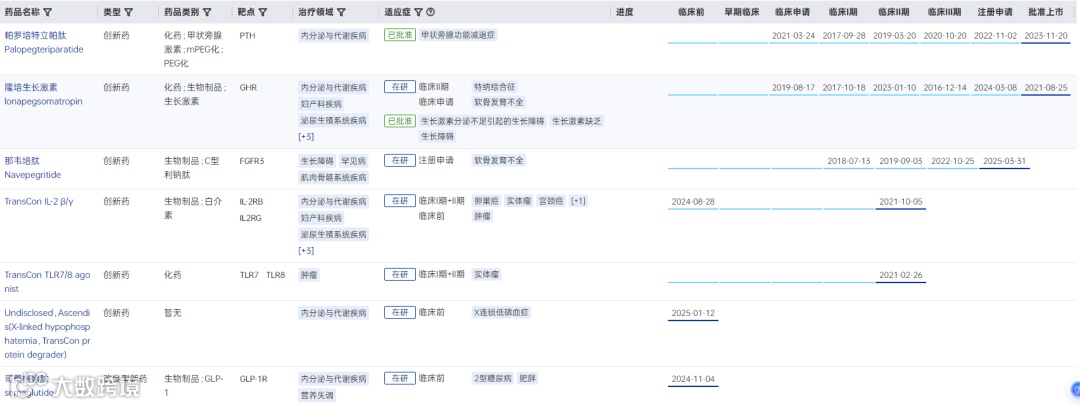 Ascendis公司在研管线