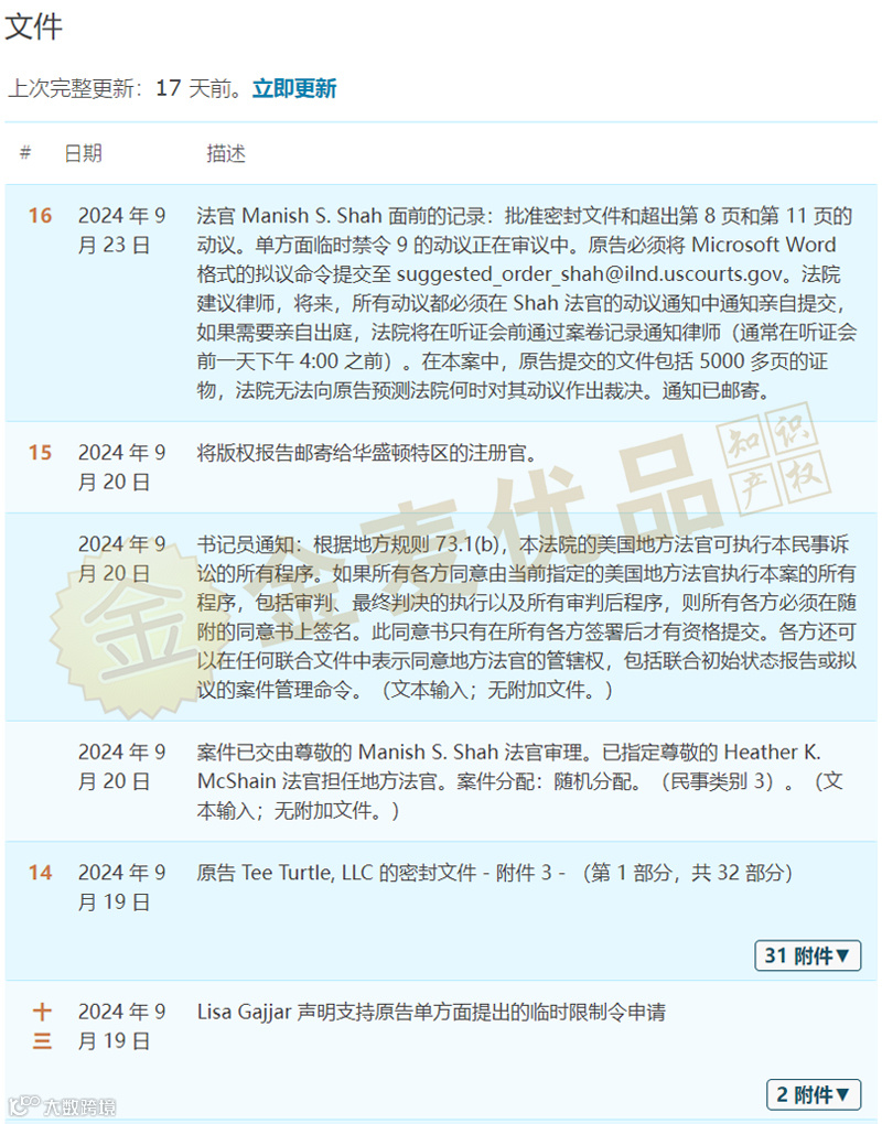 本案于2024年9月19日发起商标、版权诉讼,案件号2024-cv-08669,原告已提出TRO。