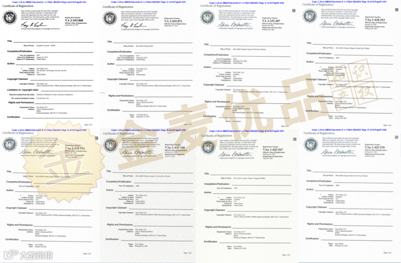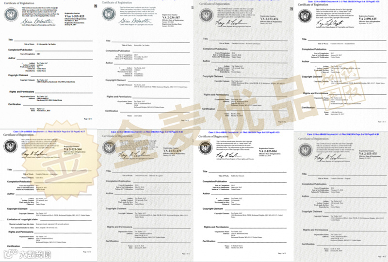 其中,这次维权行动覆盖了巨量的版权图片,这些图片主要涉及到旗下各品牌的商标权益,也包括如TEE TURTLE、UNSTABLE UNICORNS等知名商标、翻转玩偶、桌游图片及文字版权。