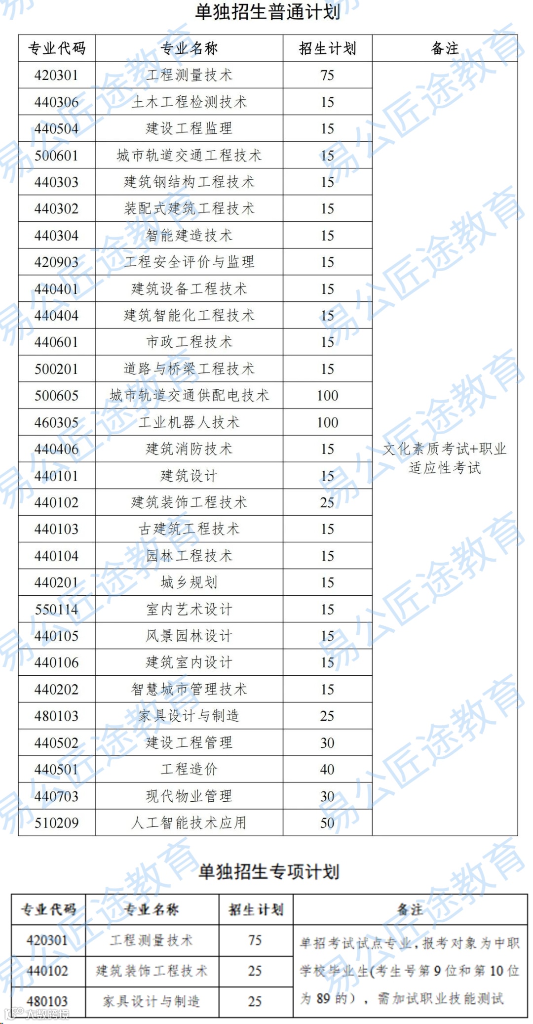 2024年单独招生的专业有32个,总计划招生数为900人,其中普通计划775个、面向中职学校毕业生专项计划125个。共2206人报考,录取比例为41%左右。具体招生计划如下:
