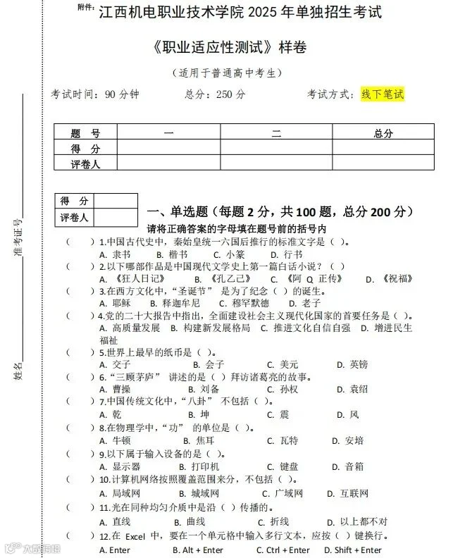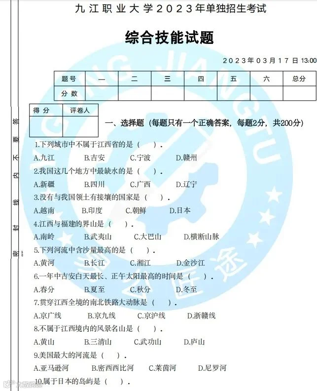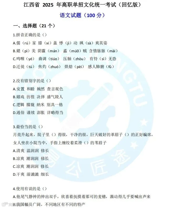 ②江西单招历年真题
