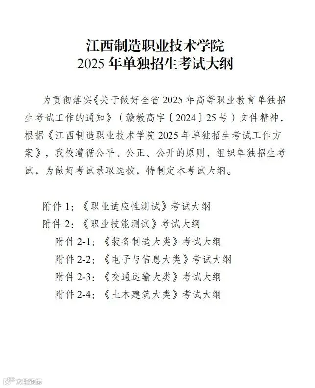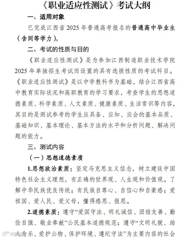 ①江西单招考试大纲