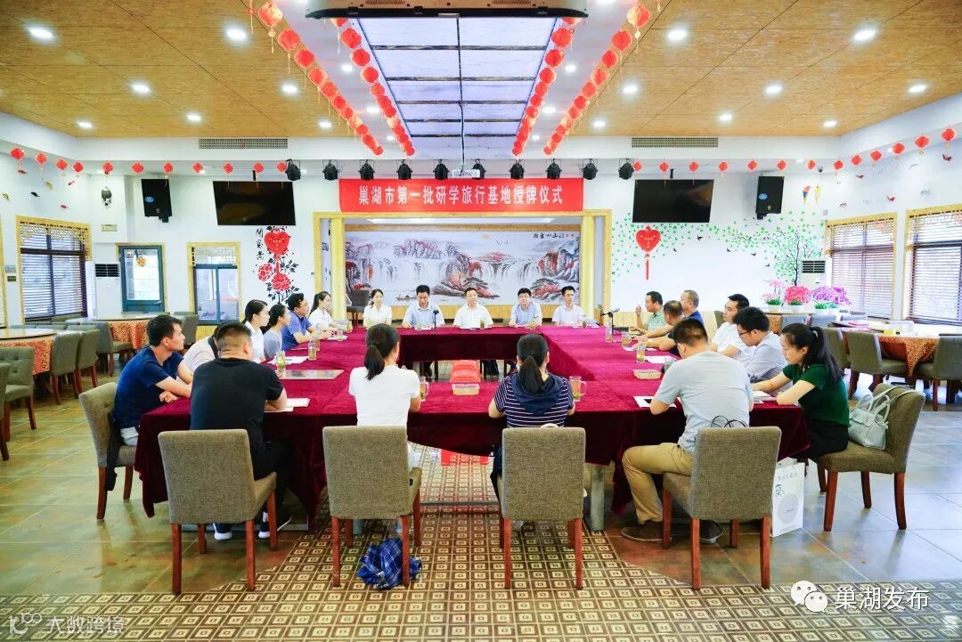 巢湖市首批研学旅行基地的命名授牌由市旅游局、市教育体育局联合举办,第一批九家研学旅行基地负责人,部分A级景区、旅行社、星级酒店、星级农家乐的代表以及市旅游局、市教育体育局、中庙街道办事处等负责人参加了此次授牌仪式。