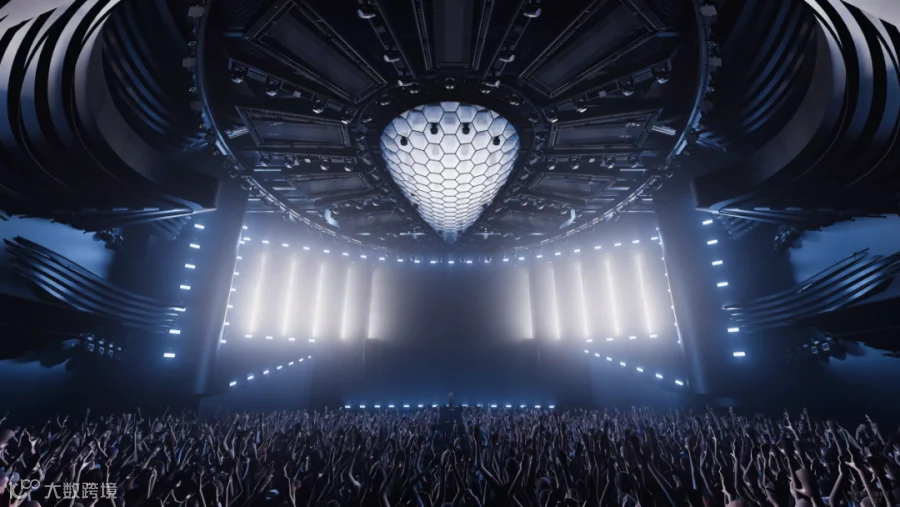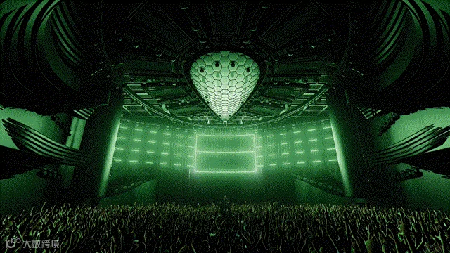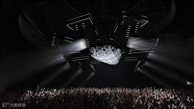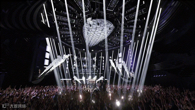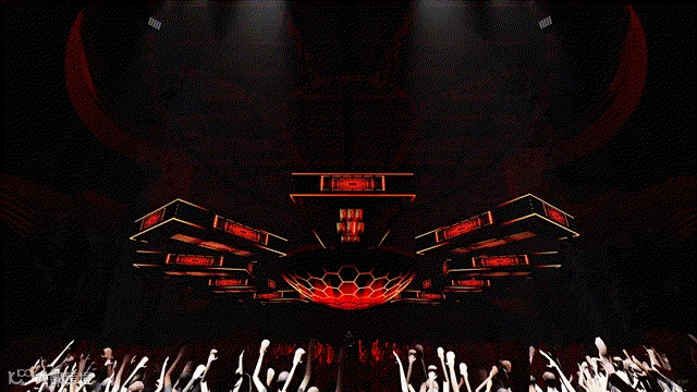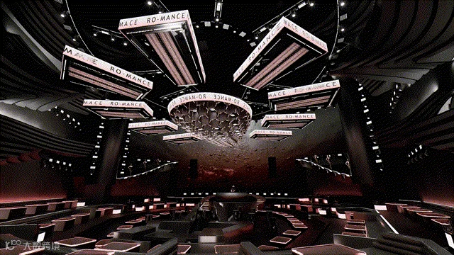 顶面波浪般的水滴舞美造型宛如流动的艺术,与巨大的投影屏幕交织成一幅富有动感的画面。这不仅凸显了几何形态之间的对比与冲突,更通过克制而优雅的色彩搭配和抽象的设计理念,巧妙地赋予了空间无尽的张力。整体而言,它仿佛一幅完美的画卷,每一处细节都相得益彰,呈现出令人心驰神往的极致美感。