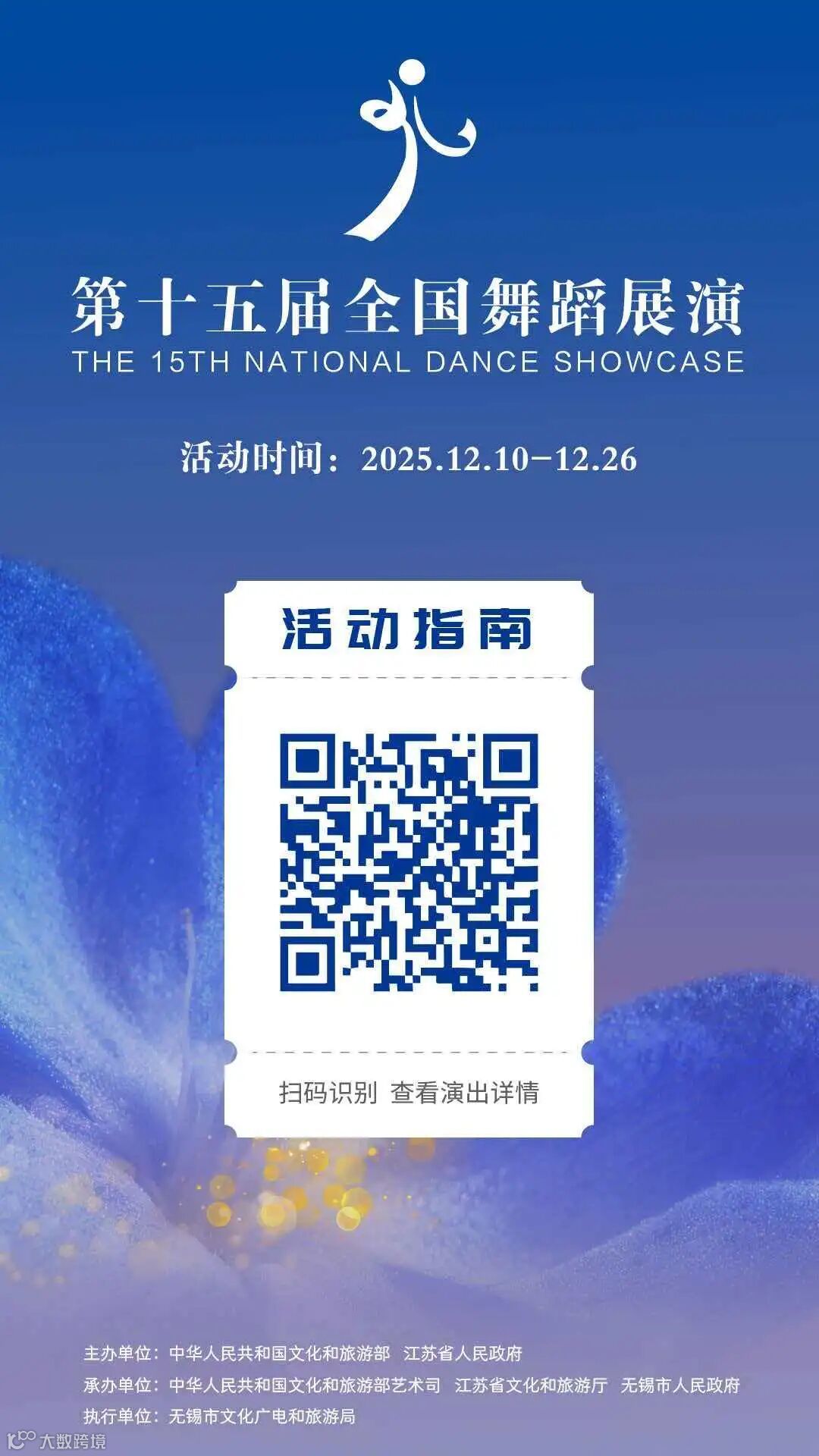 由文化和旅游部、江苏省人民政府主办,文化和旅游部艺术司、江苏省文化和旅游厅、无锡市人民政府承办的第十五届全国舞蹈展演已于12月10日在无锡盛大启幕。
