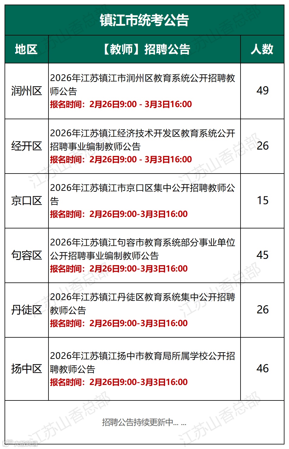京口区、润州区、句容区、丹徒区、经开区、扬州区均确认参与招聘!