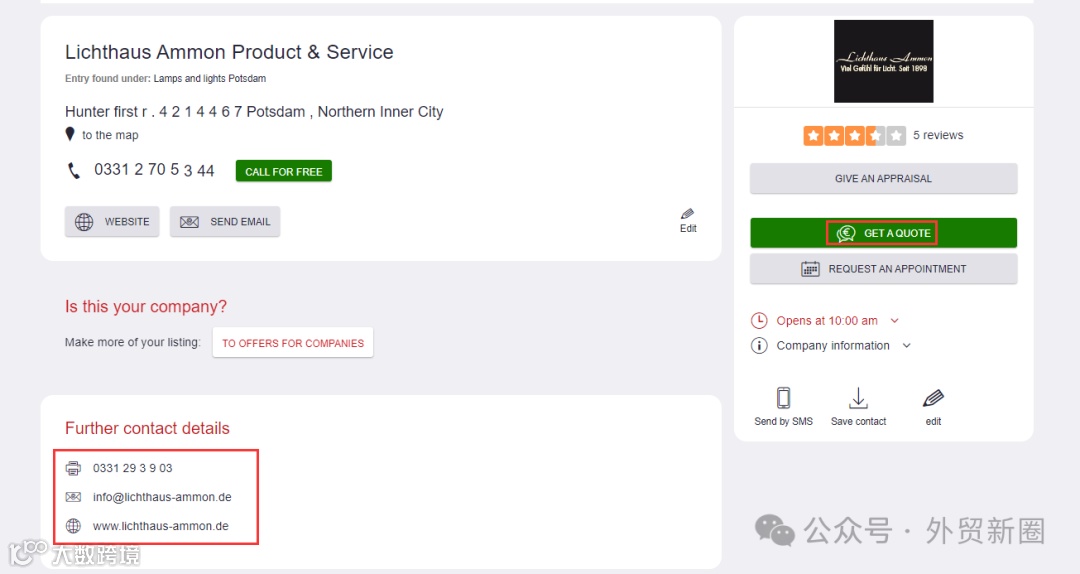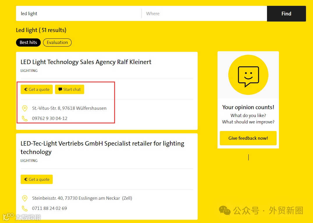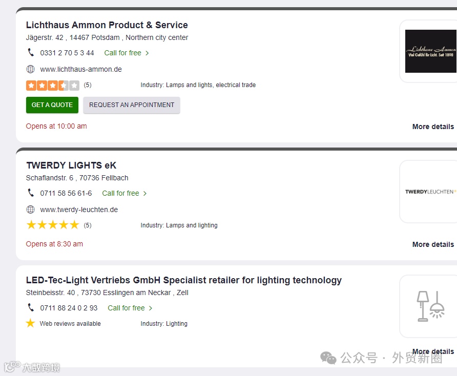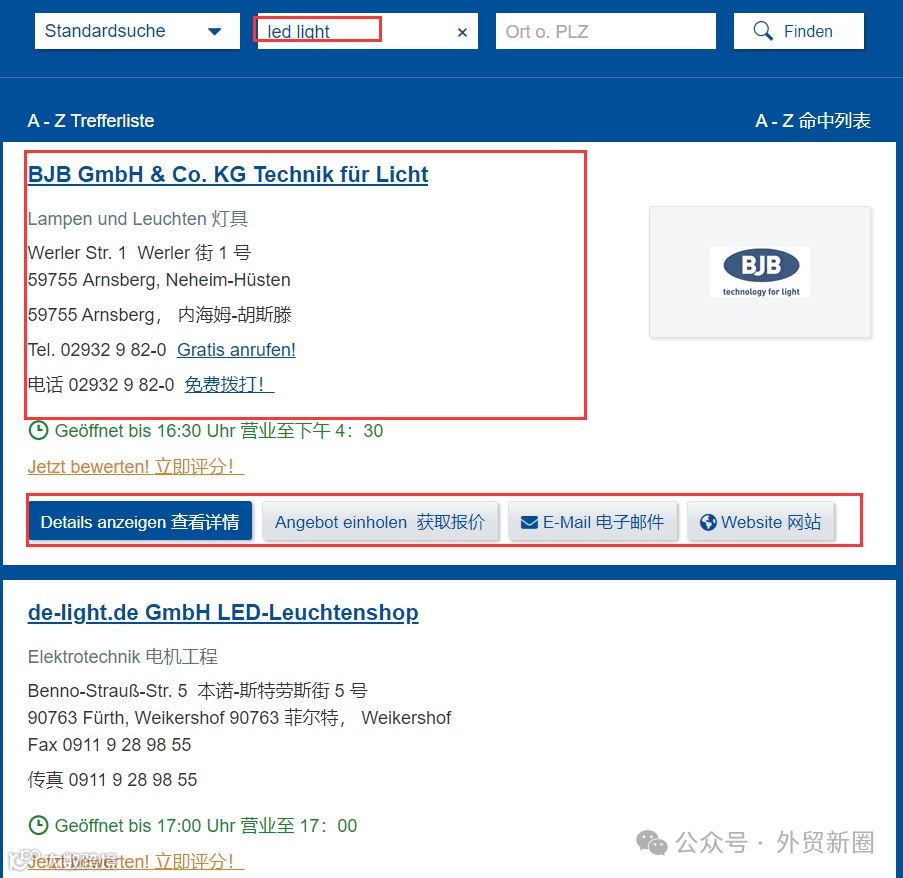 也可以根据产品词去查询到德国本土的公司信息,基本上都有网站,邮箱和电话信息