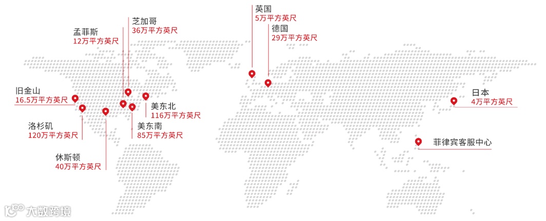 ● 仓储面积:约36万平方英尺