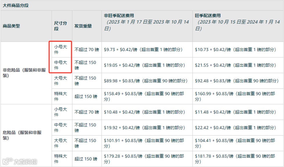 而根据亚马逊24年的规则,它则属于超大尺寸70-150磅(不含70磅),2月5日之后的价格为: